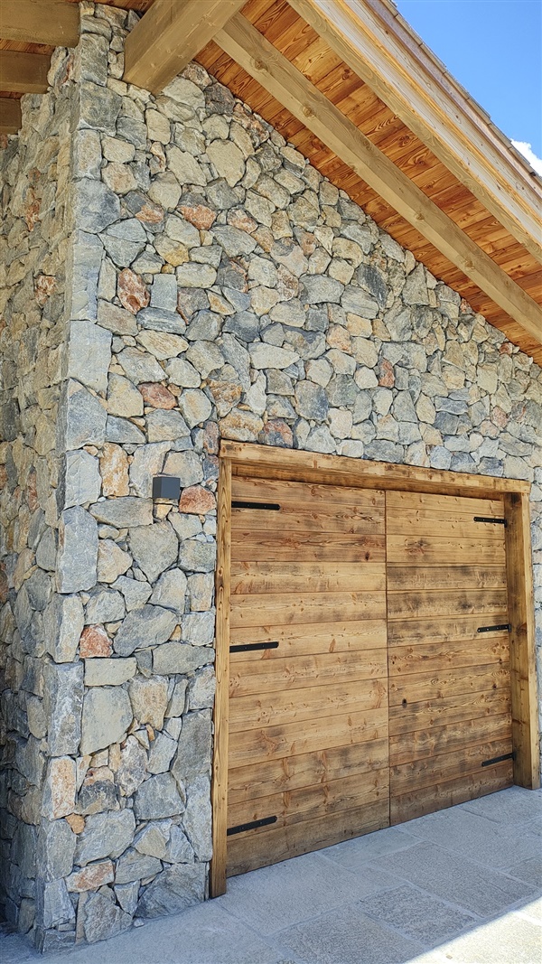 Rivestimento Ligure,con un lato posteriore segato per poter essere posato a colla,tipo calcaree dal colore grigio/giallo,ottimo per una posa senza fuga.