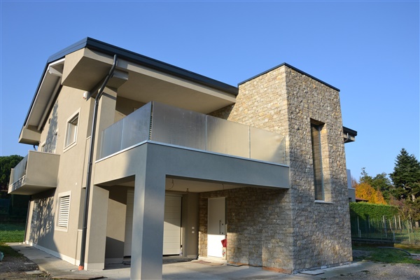 Die Beschichtung TEVERE mit seinen gelblichen Farbe und mit seinen Faserband-Effekt ist gut geeignet für Häuser, die ein feinen visuellen Impact haben möchten.