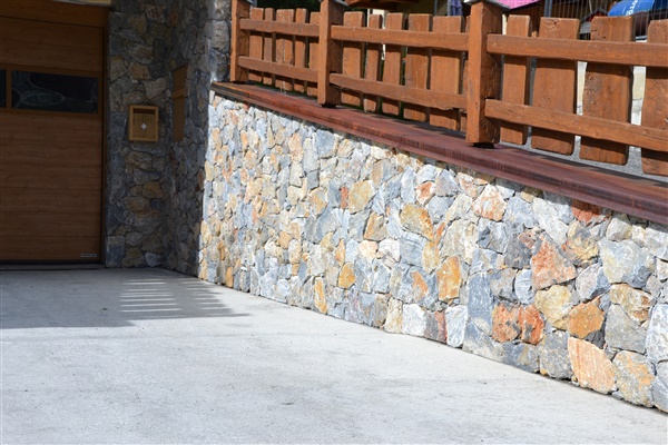 Rivestimento Ligure,con un lato posteriore segato per poter essere posato a colla,tipo calcaree dal colore grigio/giallo,ottimo per una posa senza fuga.